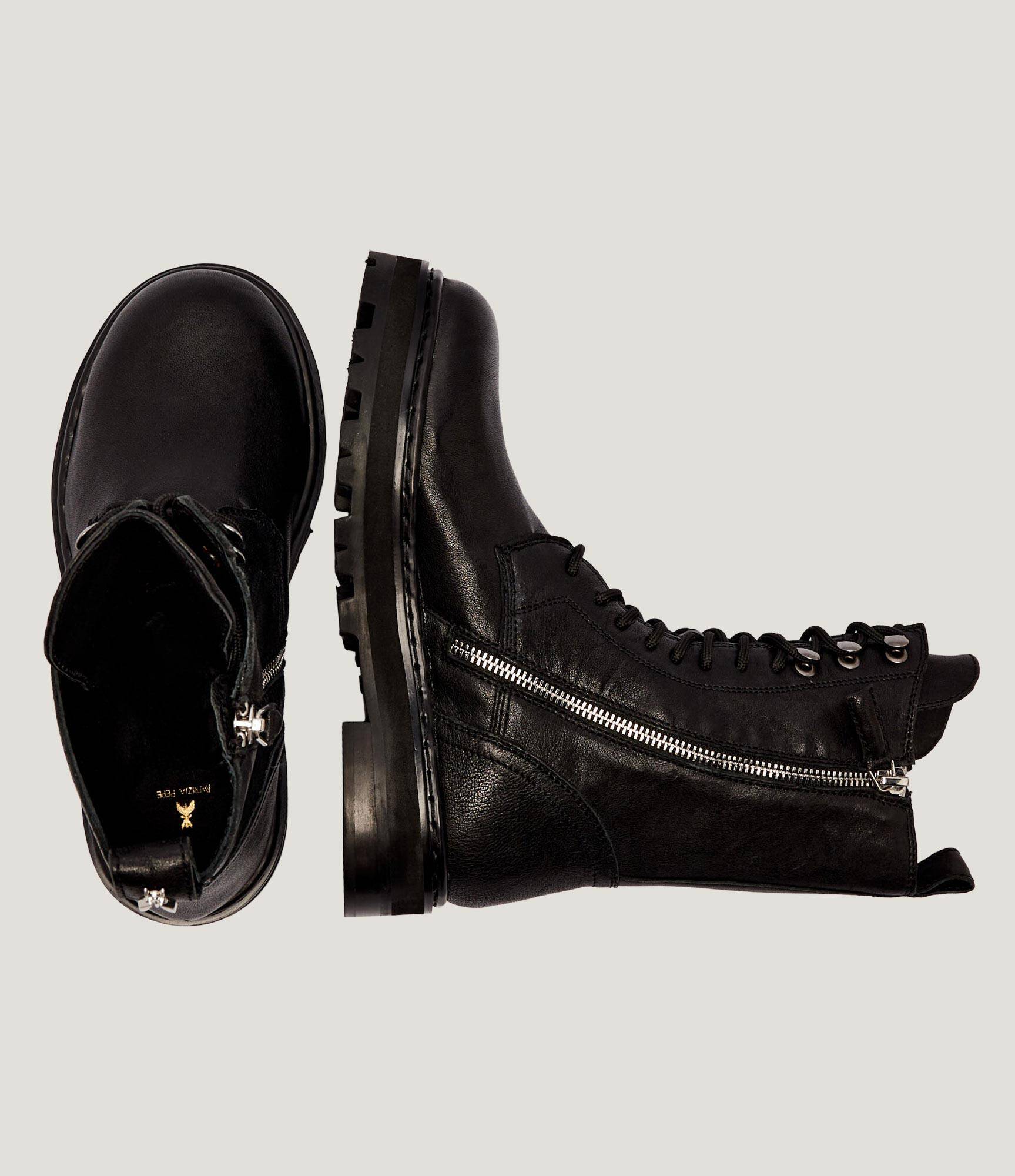 Anfibi bassi in pelle. Chiusura con lacci e cerniera laterale. Una scarpa perfetta per ogni stagione.