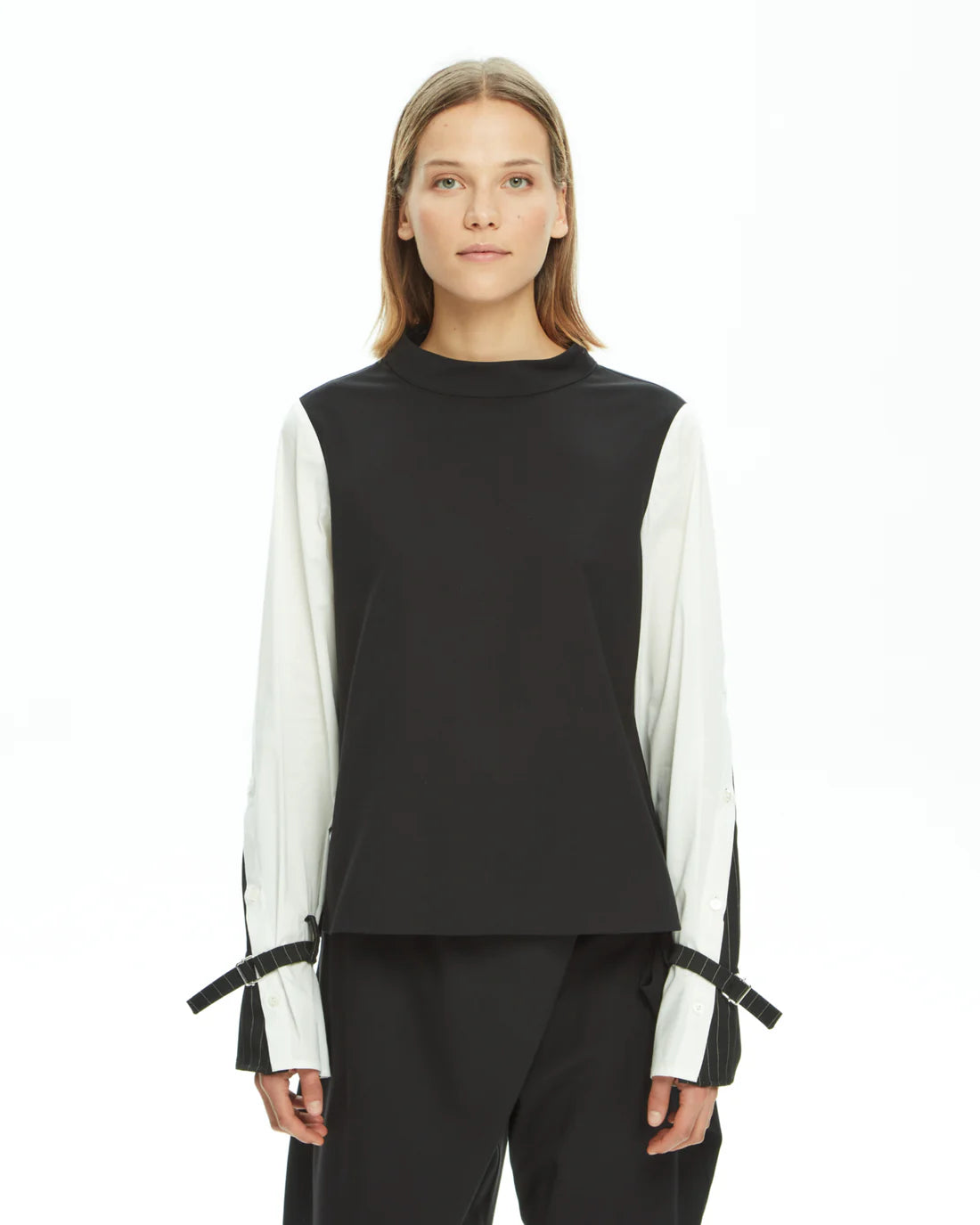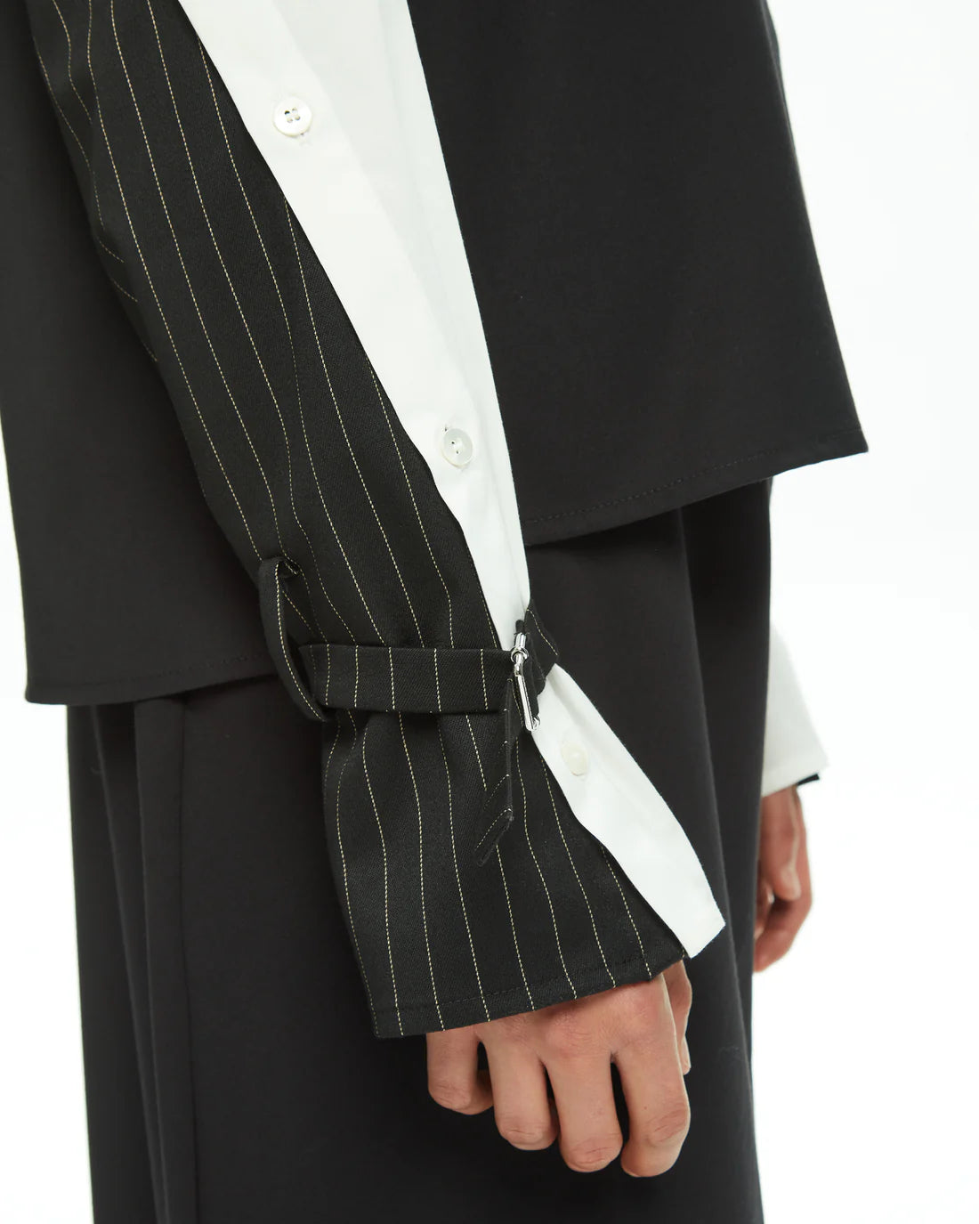 Camicia in misto viscosa elasticizzata, creata con tessuti uniti insieme. Bottoni a vista sul retro e sulle maniche. Vestibilità regular.