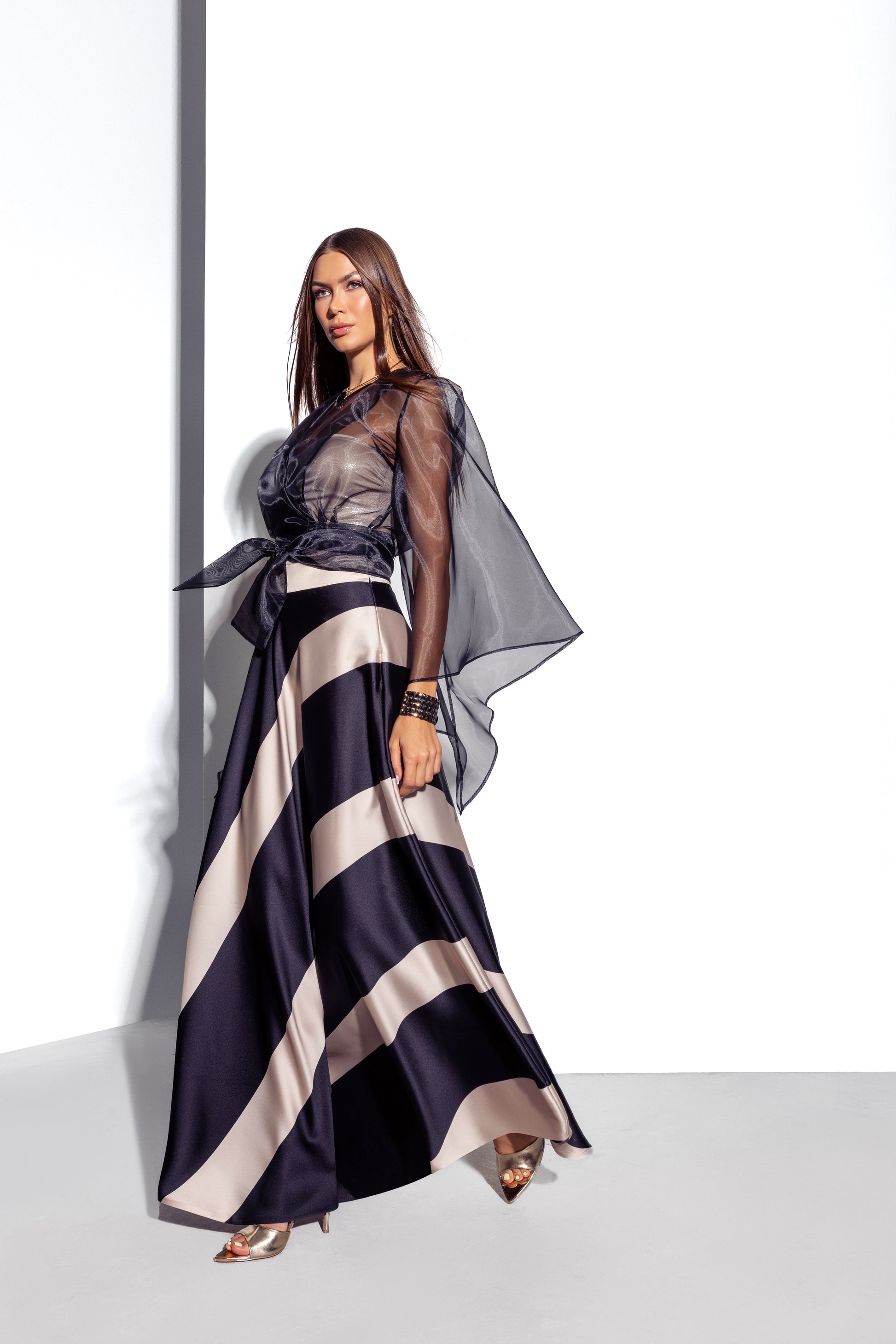 Camicia incrociata in organza. Lunghezza alla vita, manica 4/4 ampia. Vestibilità ampia.