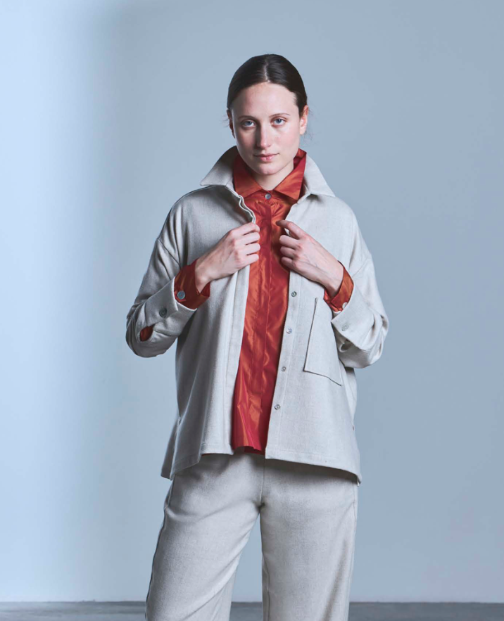 Camicia leggermente over, tessuto satinato. Colletto classico, chiusura con bottoni grandi. Dettaglio della tasca anteriore, vestibilità normale.