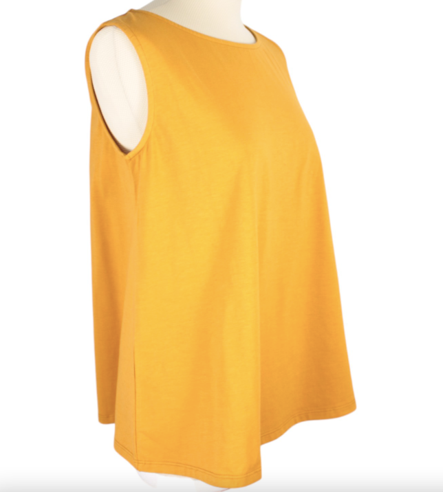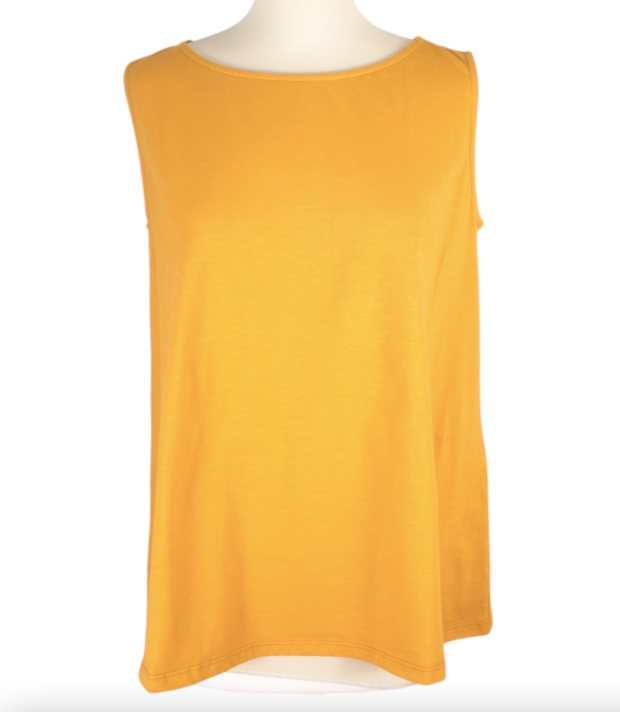 Canotta in cotone basic, modello spalla larga. Lunghezza sopra i fianchi taglio svasato.