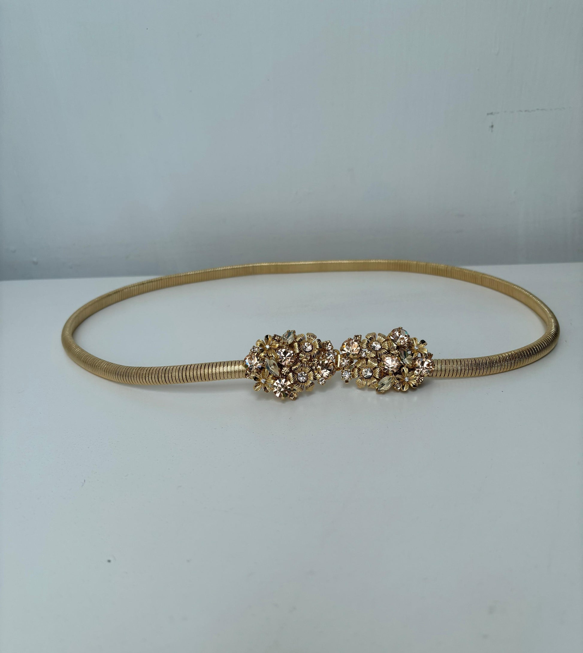 Cintura gioiello oro elastica con fibbia decorata con swarovski multicolor.