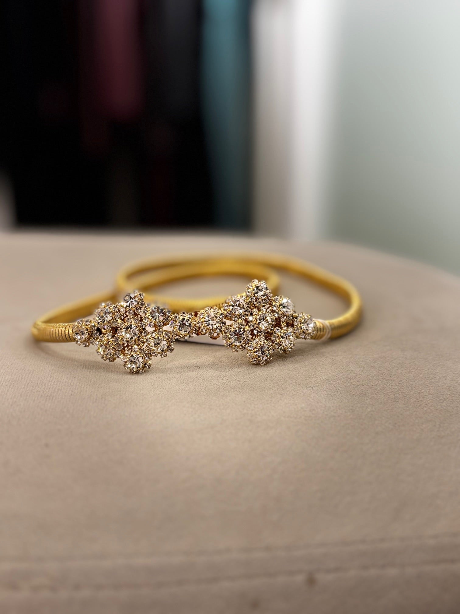 Cintura gioiello maglia bulgari con fiori oro e pietre bianche.