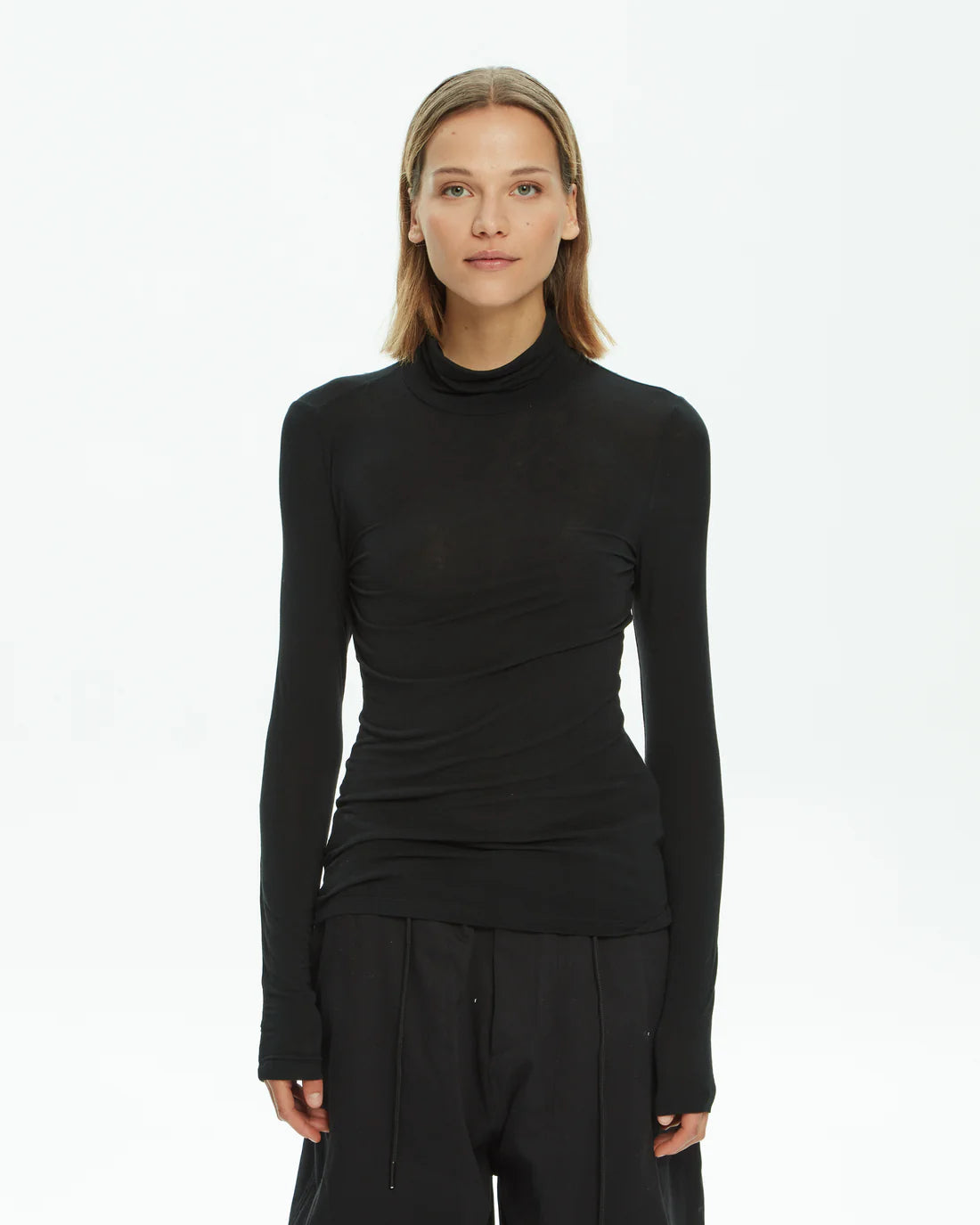 Dolcevita in misto viscosa e cashmere a collo alto e manica lunga. Vestibilità slim fit.