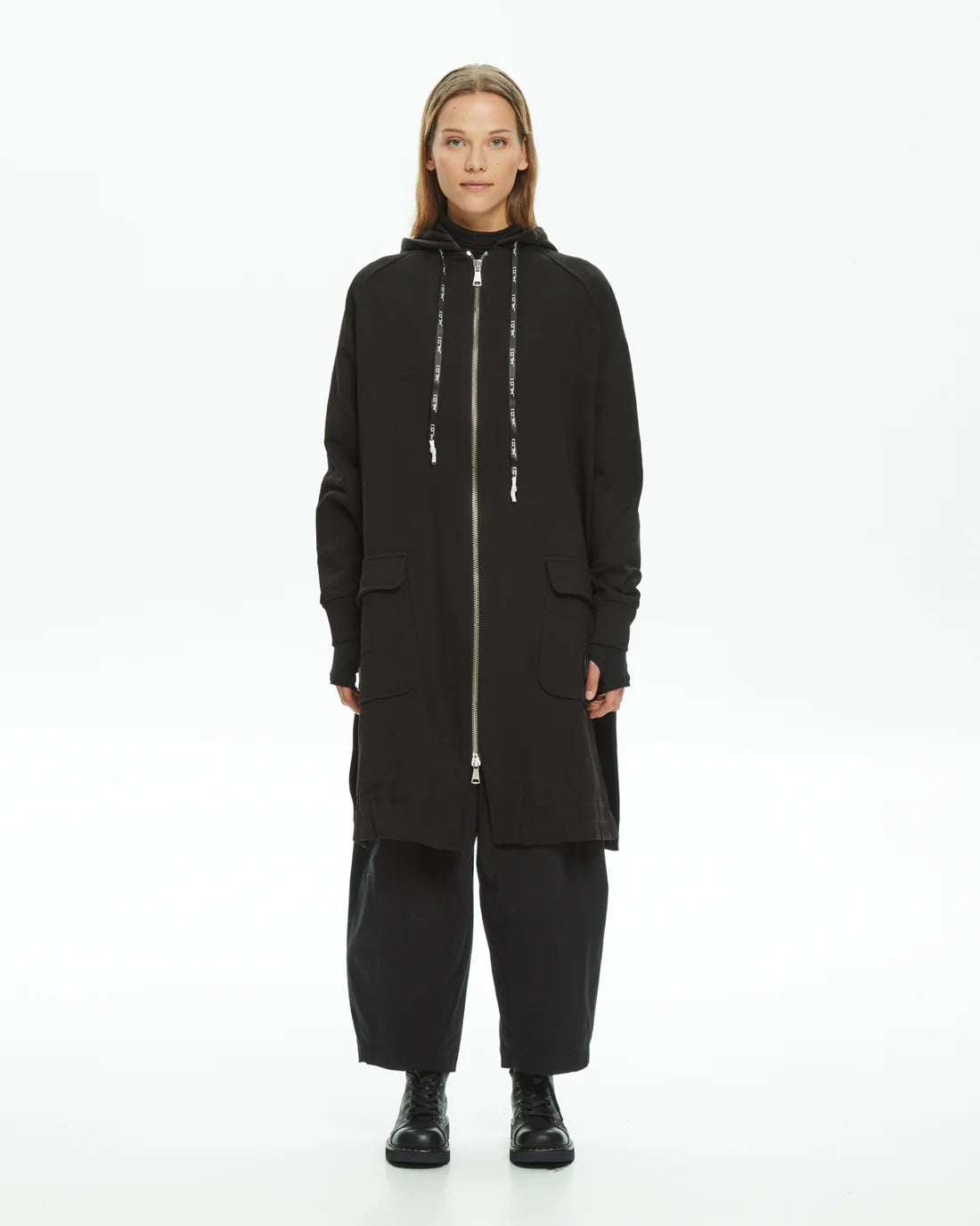 Essenziale e street, felpa lunga che unisce comfort e design urbano. La silhouette relaxed con cappuccio e maxi zip frontale lo rende un capo versatile, perfetto per look casual dal carattere deciso. Dettaglio logo MLO in rilievo sulla tasca, segno distintivo del brand e spacchi laterali sul fondo, che donano movimento e libertà di vestibilità.
