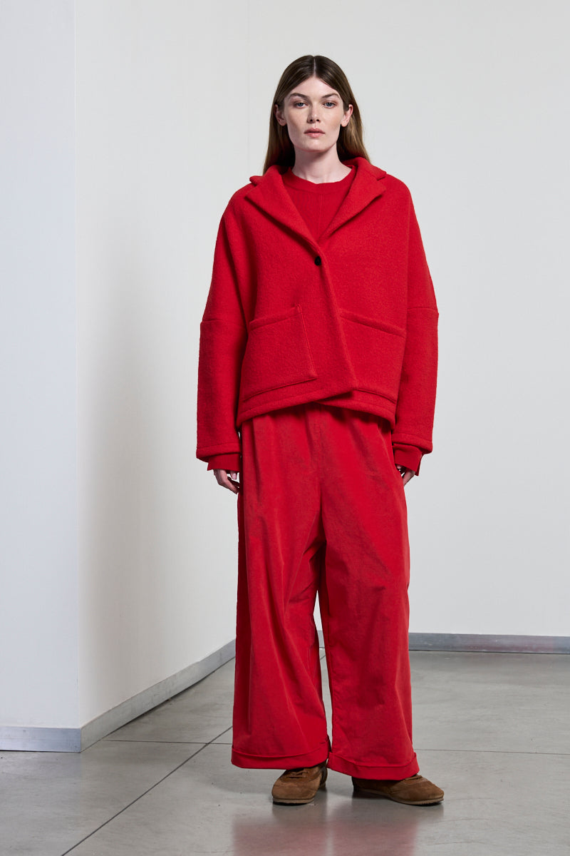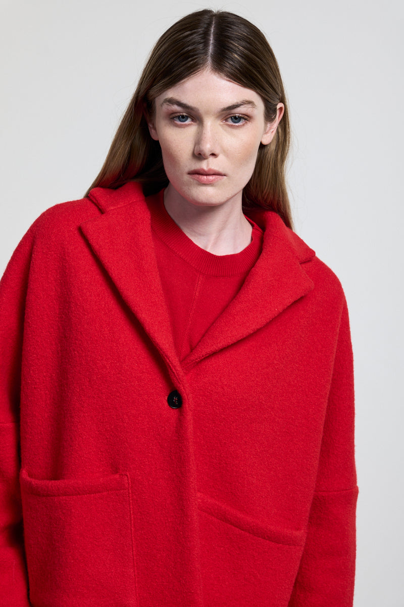 Giacca in lana cotta Neirami. Lunghezza alla vita, chiusura ad un solo bottone e tasconi sul davanti. Vestibilità over.