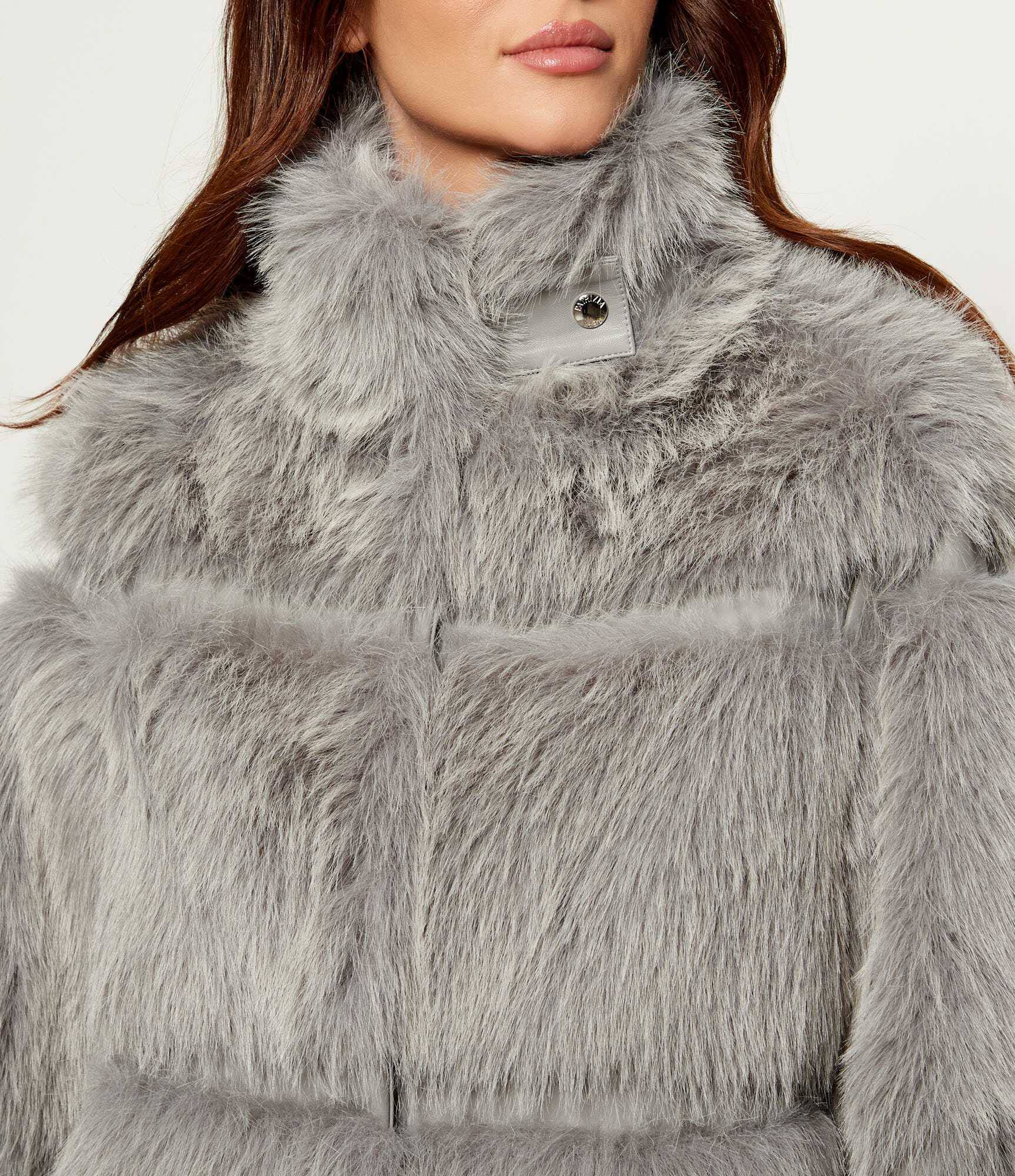 Giacca ecopelliccia con polsini stretti a costine, abbottonatura al collo, modello leggermente over e morbido. Un capo passepartout che ogni armadio dovrebbe avere.