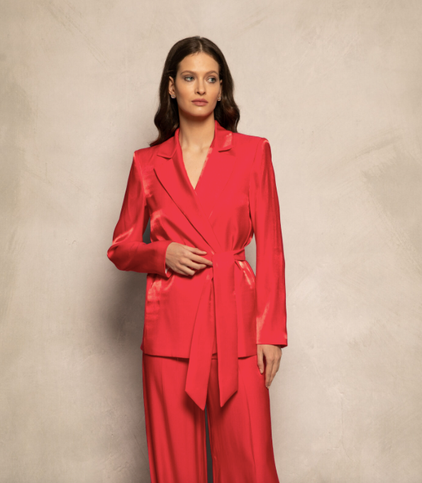 Giacca morbida effetto reflection (satinato). Vestibilità normale, cinta in vita per una silhouette più enfatizzata.