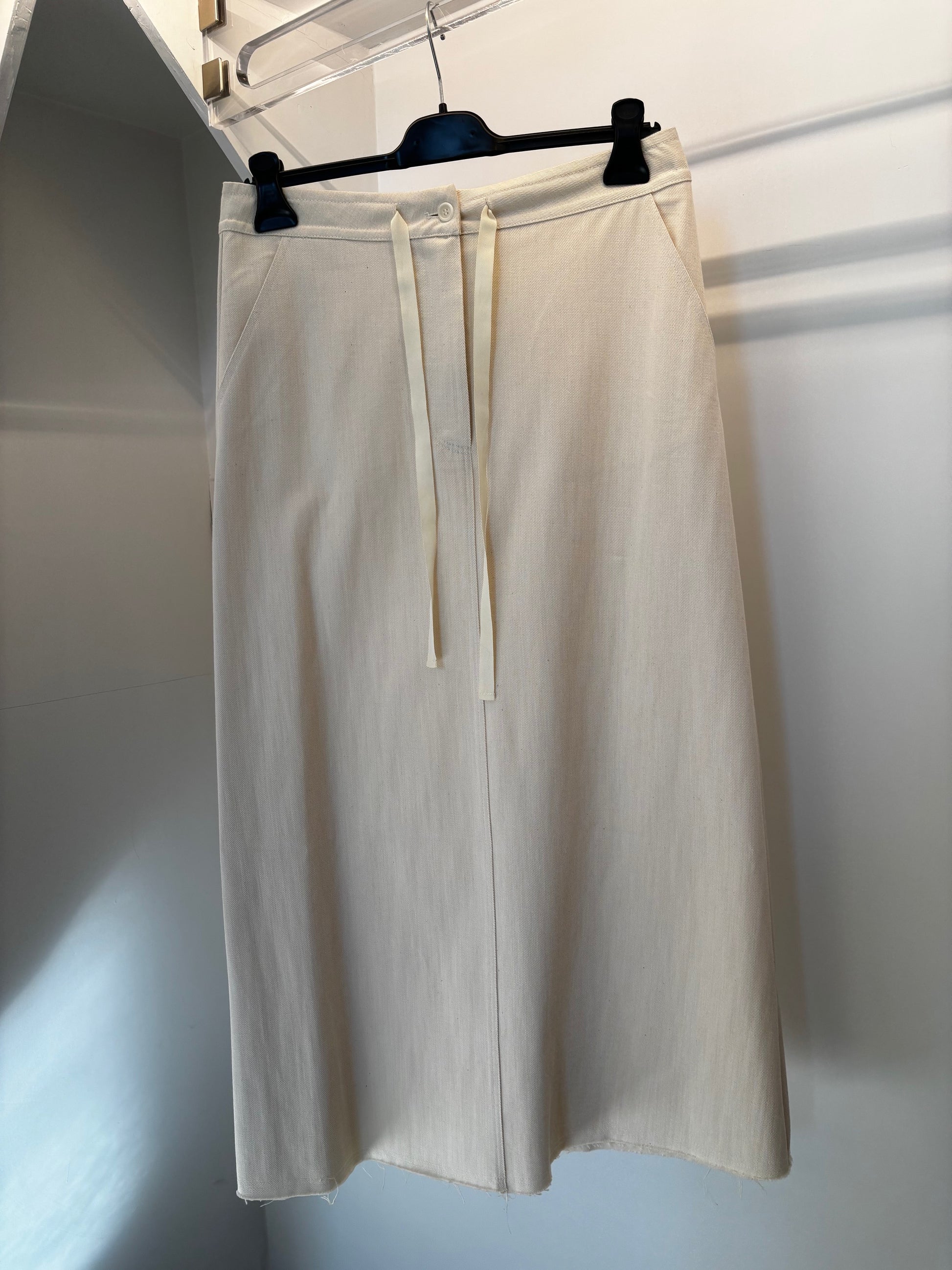 Gonna lunga LABORATORIO in canvas di cotone. Lunghezza alla caviglia, taglio dritto, vestibilità regolare con coulisse alla vita.