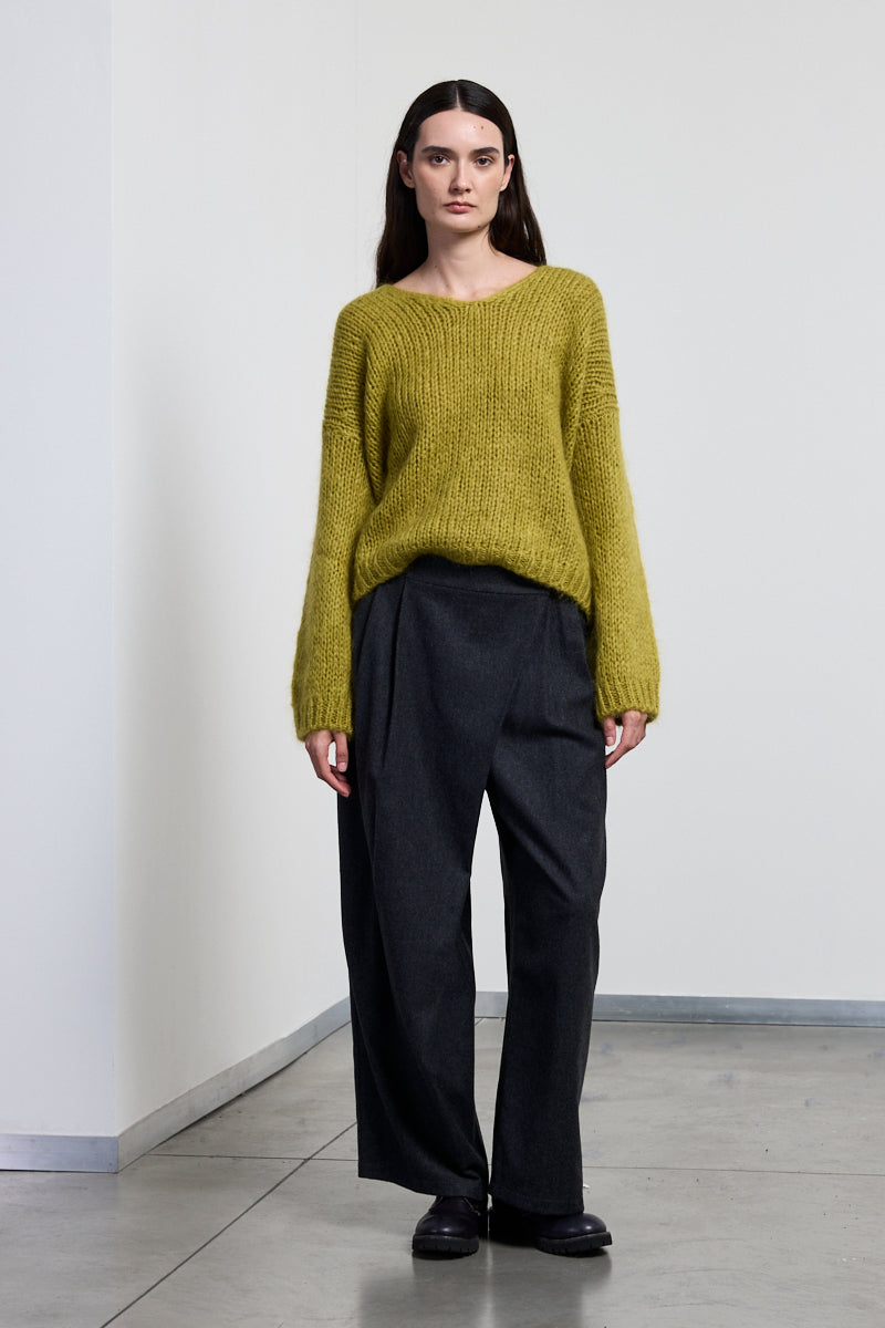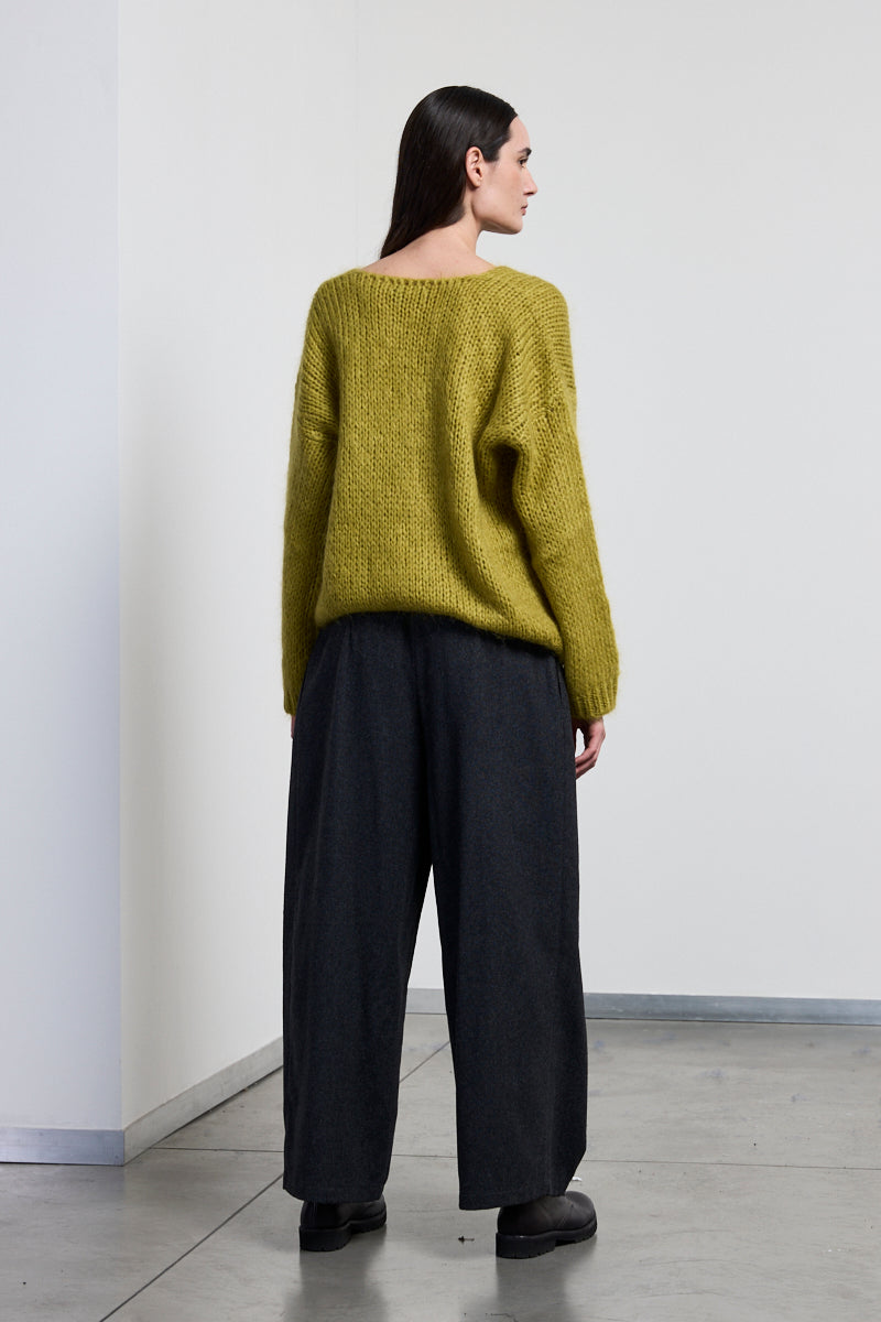 Maglia ampia scollo a V in mohair. Manica lunga, vestibilità over.