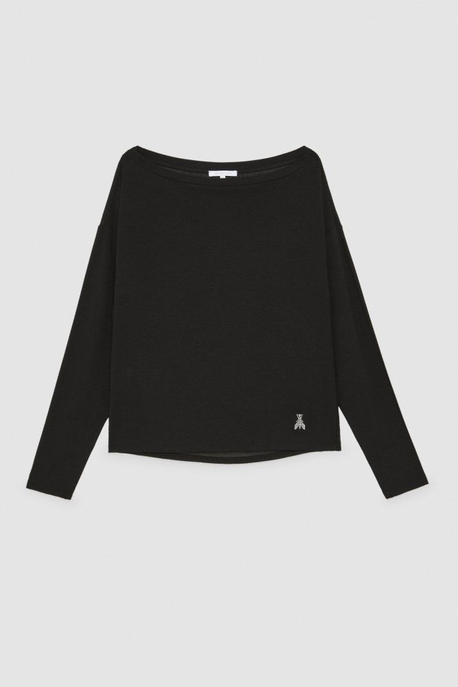Magia svasata in viscosa con scollo a barca. Vestibilità morbida, fondo ampio con logo fly.