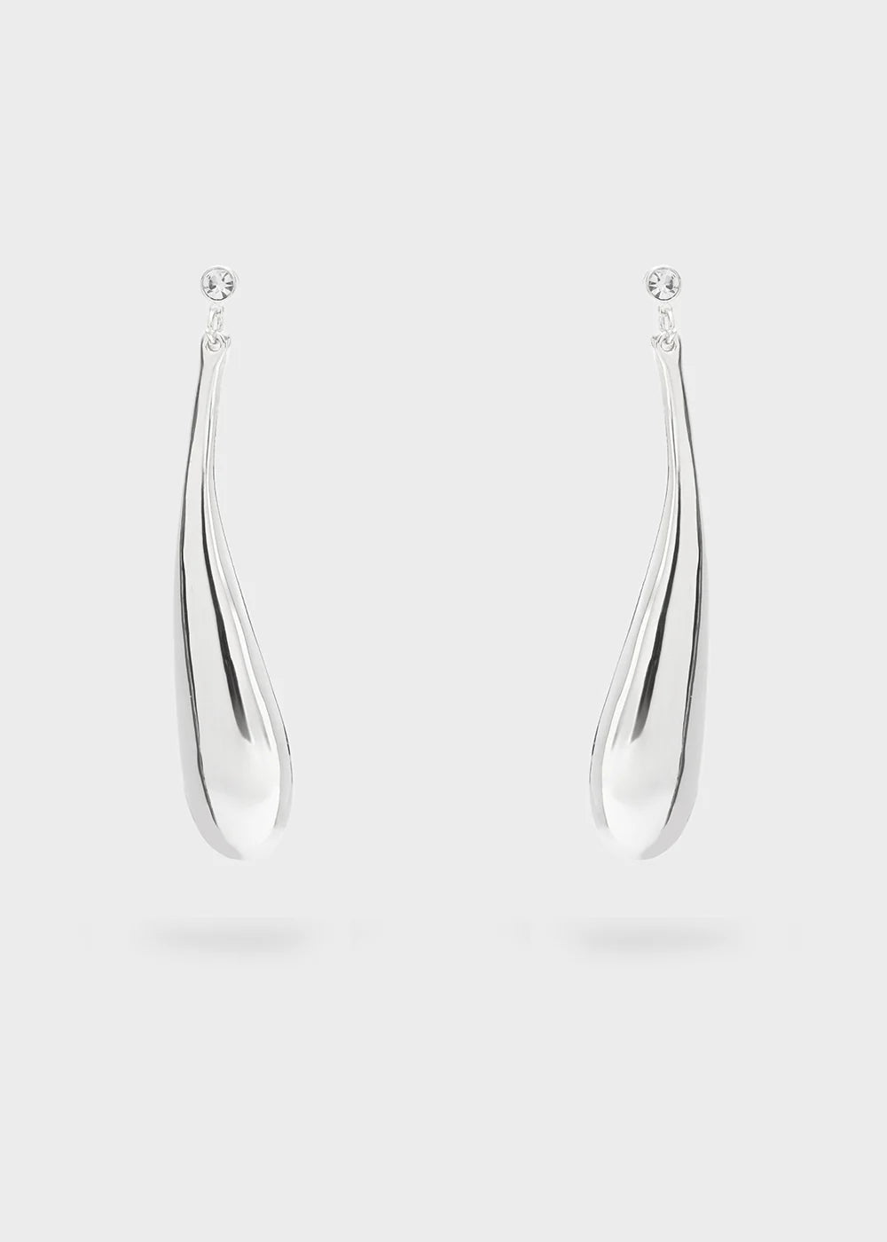 Orecchini pendenti a forma di goccia allungata con piccolo punto luce alla base. Design elegante e femminile.