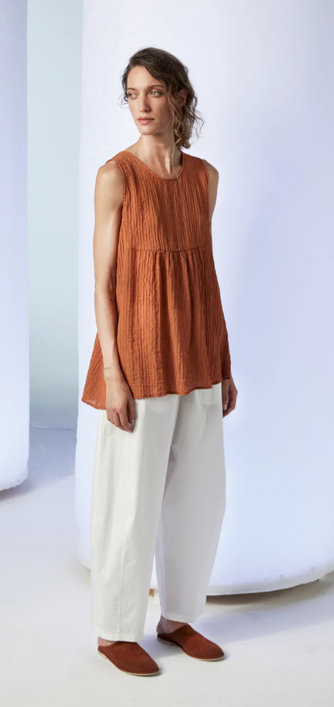 Pantalone svasato ampio, elasticizzato in vita. Vestibilità normale.