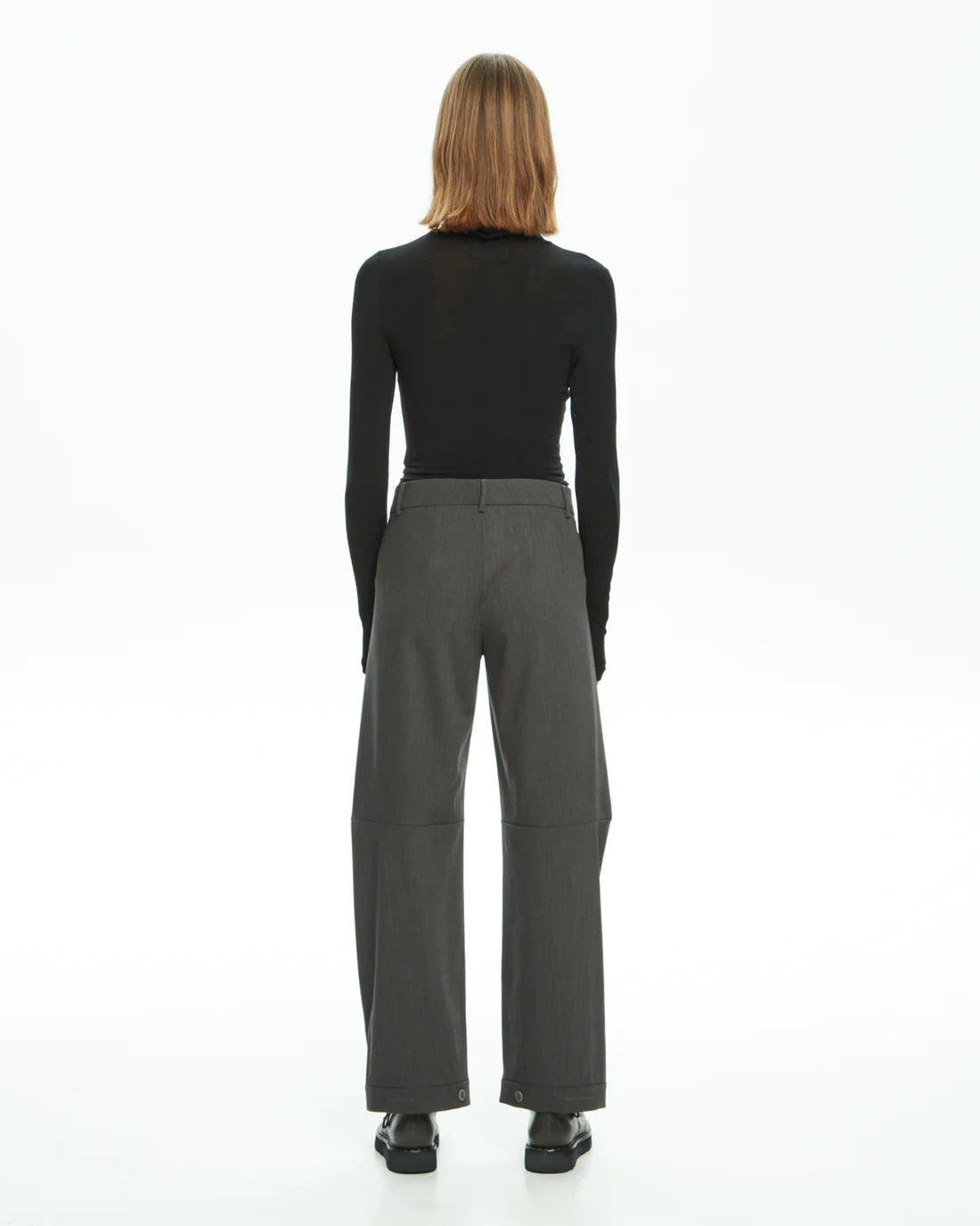 Pantalone in misto viscosa e lana elasticizzato. Tasche a filetto sul davanti e risvolti sul fondo. Chiusura tramite gancio nascosto e zip. Vestibilità comoda.