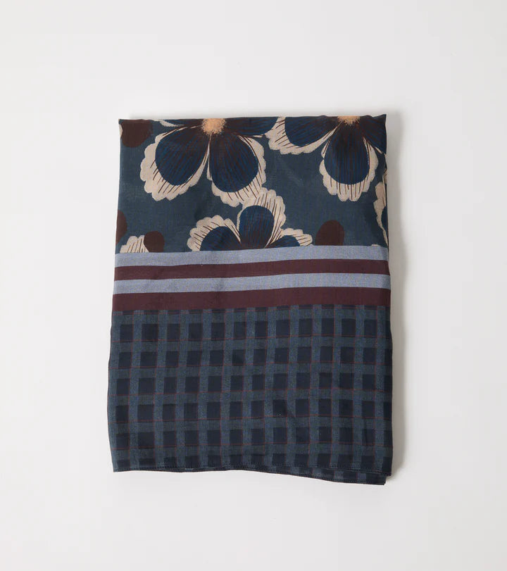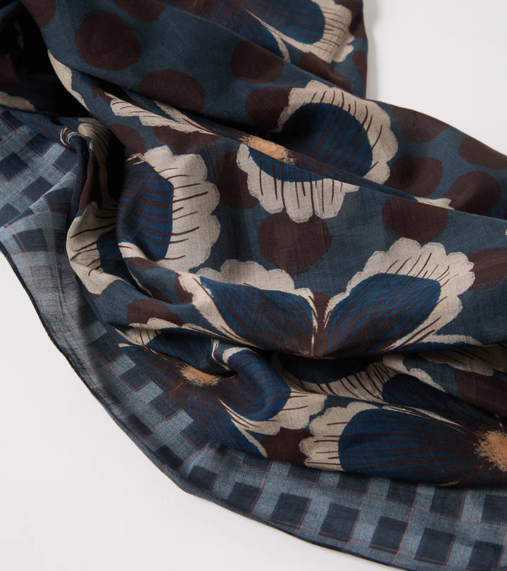 Sciarpa realizzata in cotone e seta, impreziosita da una stampa check floreale. L'accessorio ha proporzioni generose e un design avvolgente. Un essenziale chic del guardaroba femminile da indossare con una cintura in vita per dare un tocco glamour al look.