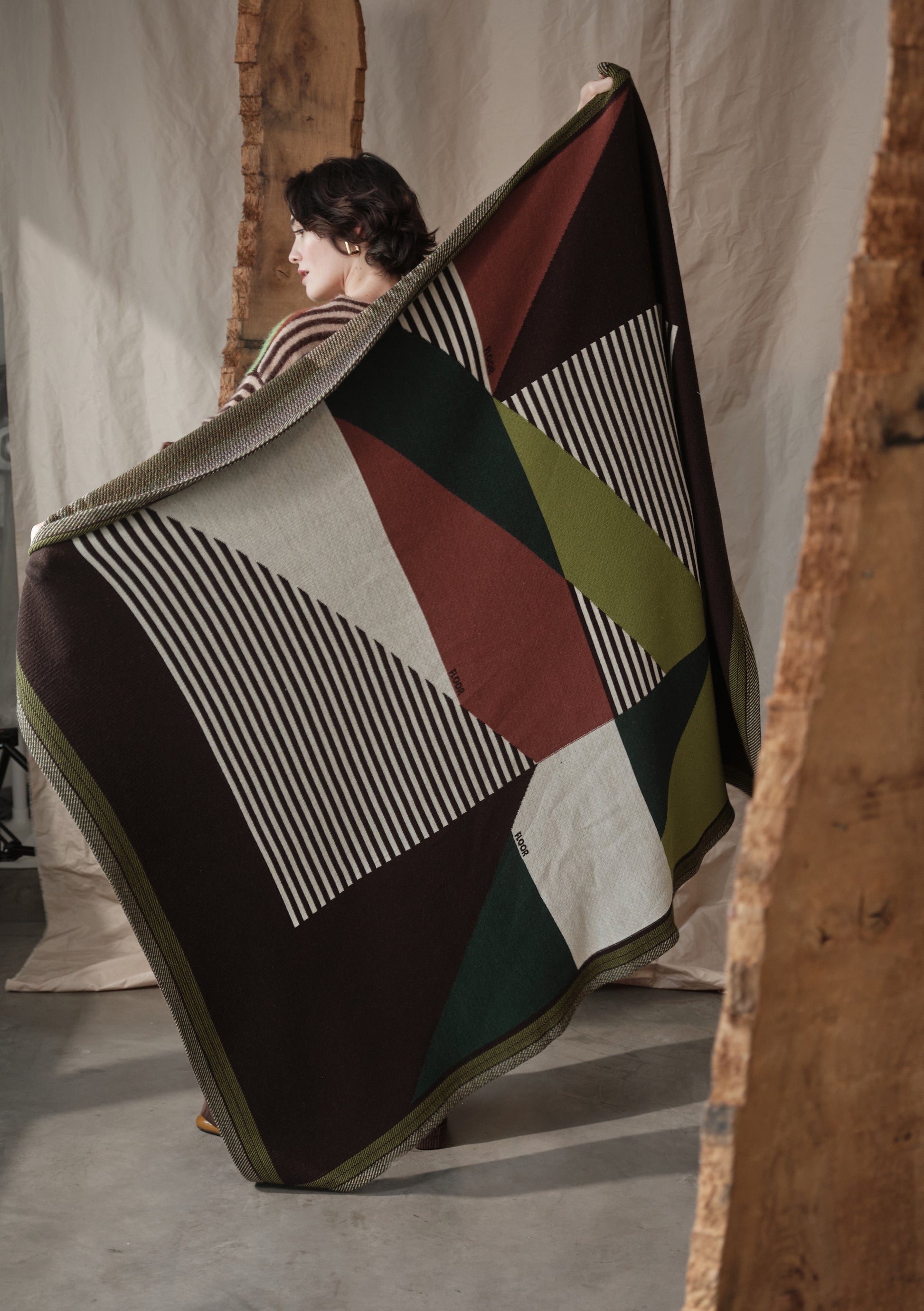 Stola multicolor color block. Modello ampio, piccolo logo sopra.