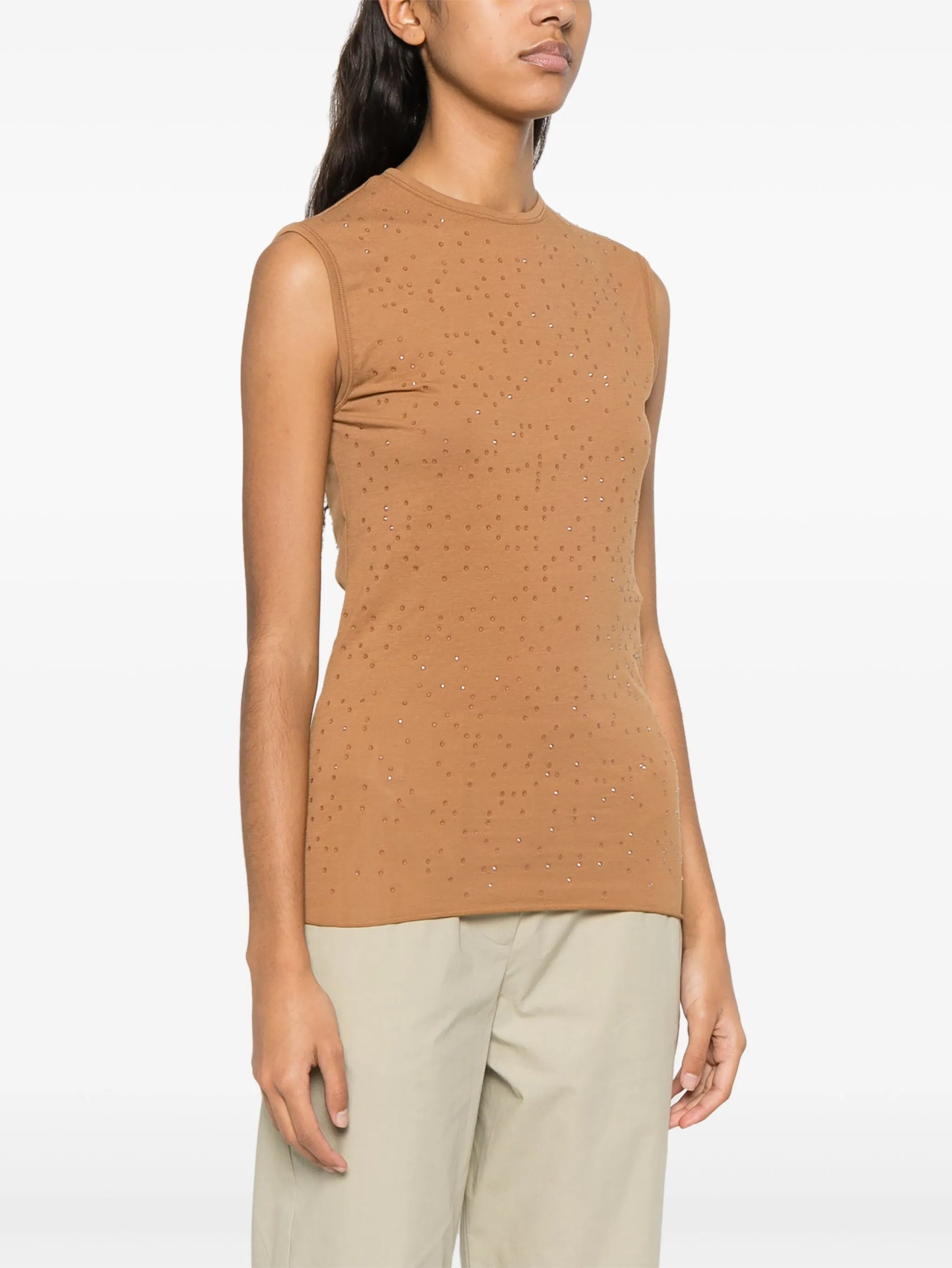 Tank top modello girocollo, smanicato. Applicazione di strass all-over.