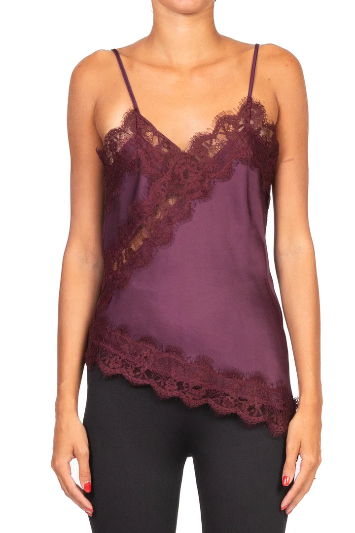 Top asimmetrico in viscosa con intarsi in pizzo che donano un tocco romantico e di classe. Vestibilità morbida. Un capo femminile e sofisticato, bretelle non regolabili per una vestibilità stabile e confortevole. Perfetto da abbinare a gonne o pantaloni per look eleganti e di carattere.
