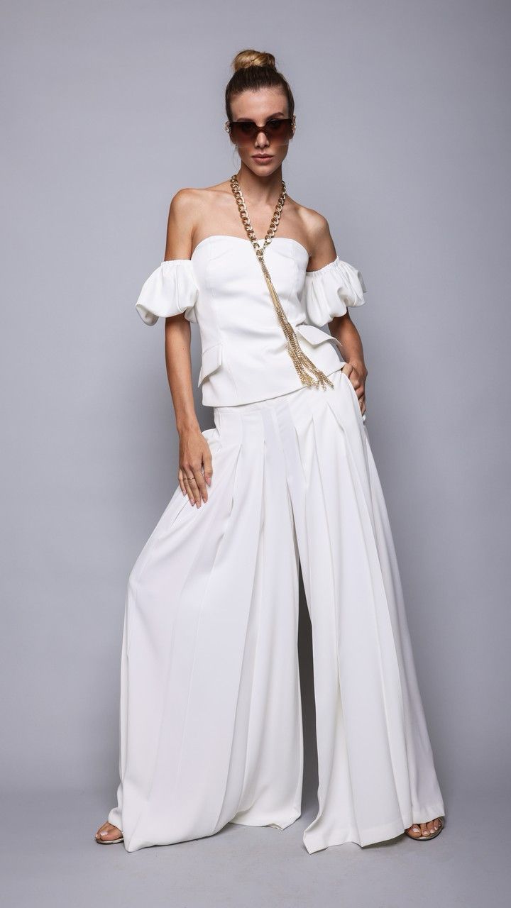 Tuta ampia in viscosa con manicotti a sbuffo.